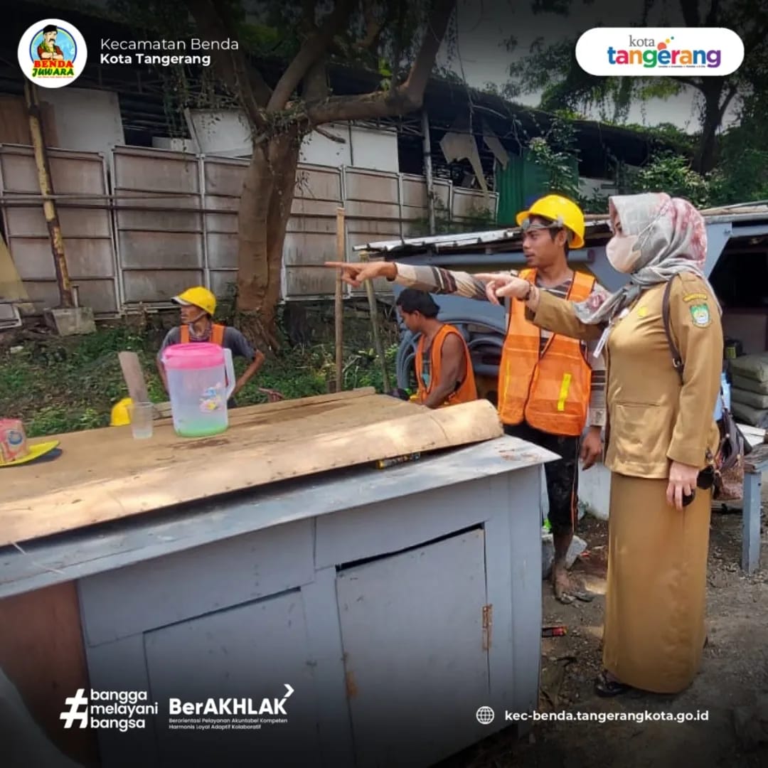 Kepala Seksi Ekonomi Pembangunan Kelurahan Belendung melaksanakan monitoring pekerjaan turap di wilayah RT 003/010 Kelurahan Belendung Kecamatan Benda Kota Tangerang.