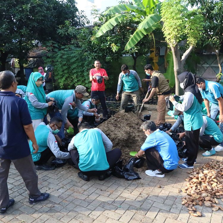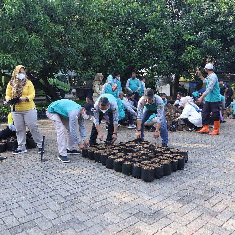 Kegiatan kerja bakti pegawai Kecamatan Benda dalam rangka persiapan pembibitan dan penanaman pohon dilingkungan kantor Kecamatan Benda dalam rangka usaha dan upaya pegawai Kecamatan Benda untuk menghijaukan lingkungan di wilayah Kecamatan Benda Kota Tange